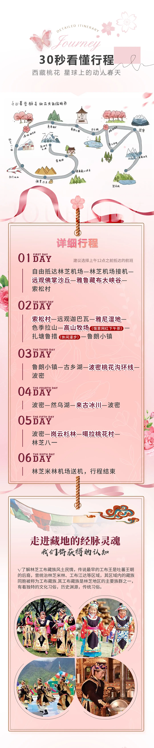 鲁朗用完早餐之后在鲁朗小镇逛一逛,随后前往波密桃花沟,这里的桃树不是人工栽植,都是野生的。几百年来,藏乡人民从没有人破坏和砍伐,这与藏族人喜爱万物生灵有很大的关系。云带挂山腰,雪山影河谷,田地绿色浓,农舍错落间,牛马悠然行,桃花遍地现。这不是文人笔下的仙境,而是人间林芝四月天。