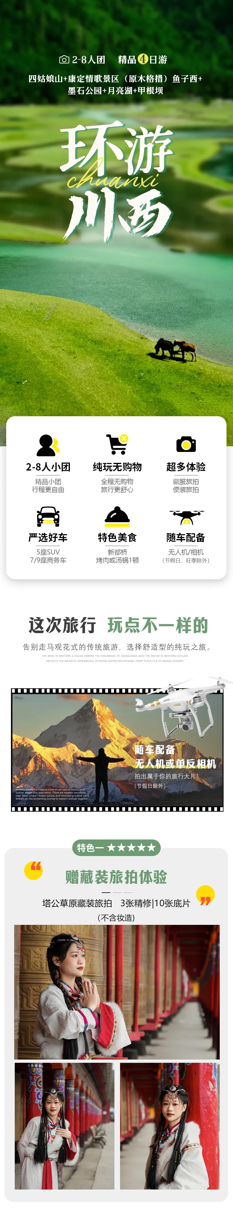 2、塔公定点简易藏装旅拍体验(5底片3精修,有服装无妆造);