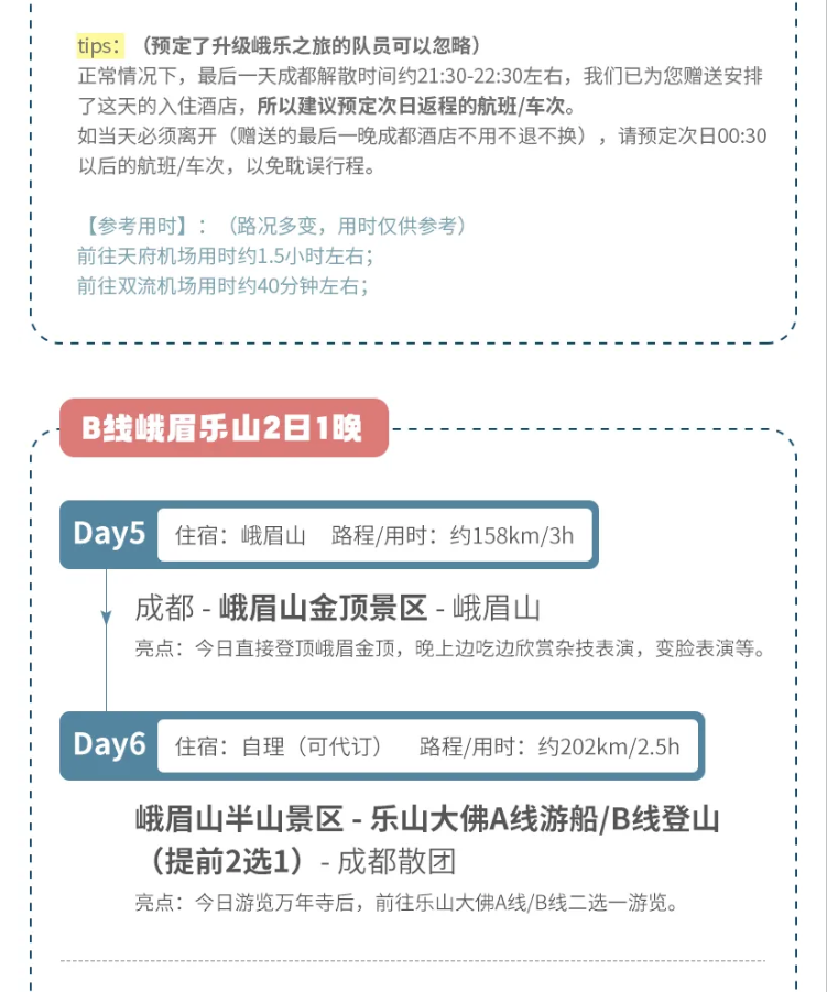(1)由于川西地区路况较差,山道狭窄,有可能因为堵车而导致延误,请大家预定第二天返程的航班或车次,以免为您造成不必要的损失。