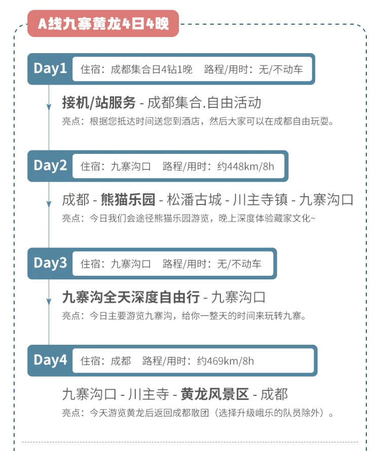 (5)走进藏家藏文化体验由领队/司机视实际情况灵活安排在D2或D3;如因九寨沟防疫政策规定,走进藏家暂停营业,则晚餐调整为团餐,望您谅解。
