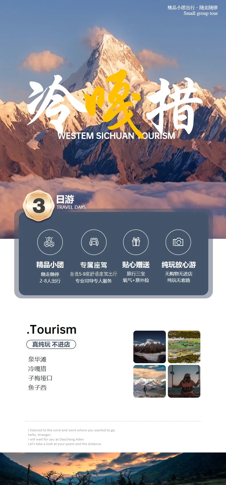 1、子梅垭口自愿前往,不是行程所列必去景点(如遇封山或特殊情况封山与旅行社无关)